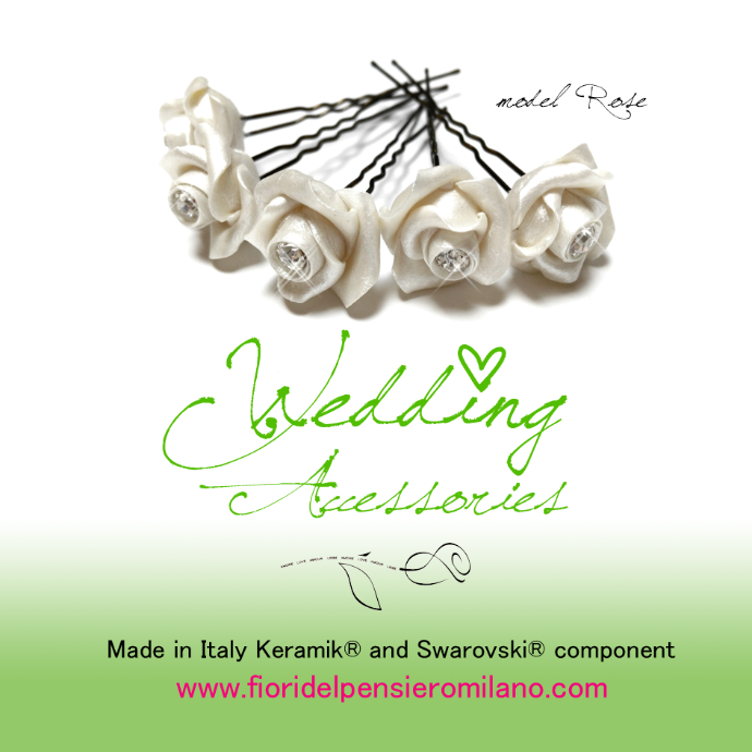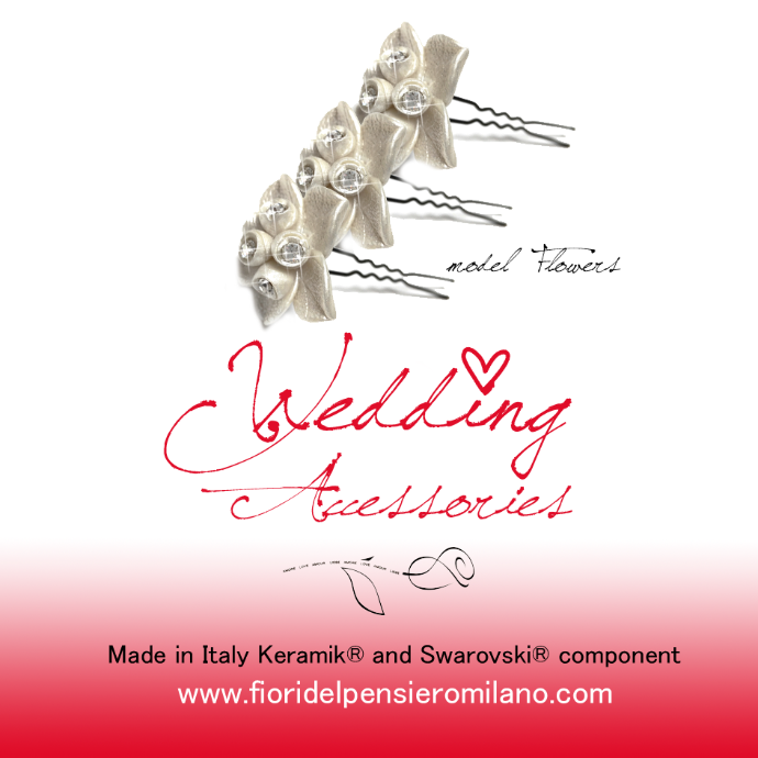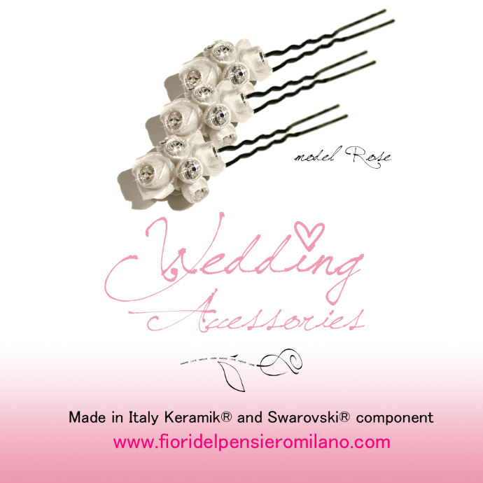 Realizzati in ceramica infrangibile Keramik® e impreziositi da cristalli Swarovski®, i fiori e le roselline di Fiori del Pensiero Milano donano splendore e delicatezza a ogni acconciatura. Completamente artigianali e personalizzabili, si adattano a ogni stile — dal raccolto romantico all’hairstyle più moderno — per valorizzare la bellezza naturale della sposa con un’eleganza eterea e contemporanea.
